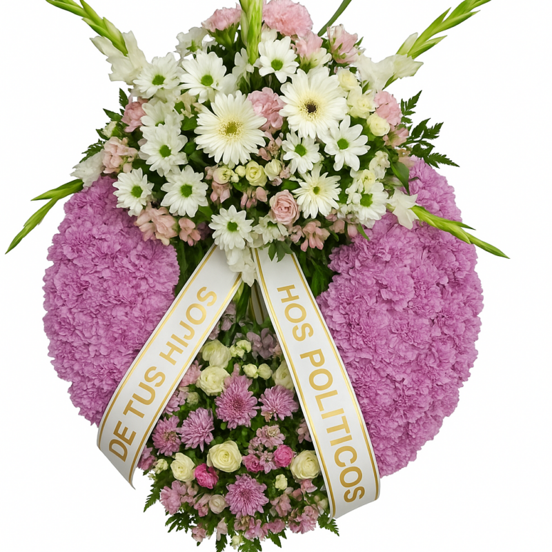 Hay varios formatos de Corona de flores para condolencias dependiendo del tamaño y el tipo de flor. Una Corona de flores para funeral puede ser de 50, 60 ó 70cm de diámetro. El diámetro que nosotros tenemos en las Coronas de Flores funerarias es de 70 cm. Pero, si lo deseas, podemos hacerla de otro tamaña. Sólo tienes que llamarnos y lo haremos a tu gusto. Adaptando el precio al tamaño de la Corona de Flores.